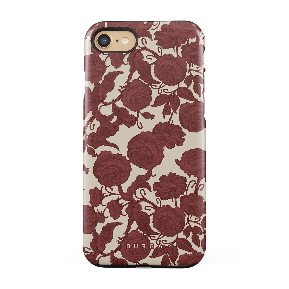 Questo design presenta: rose rosso scuro, motivo floreale intricato, motivo vintage.