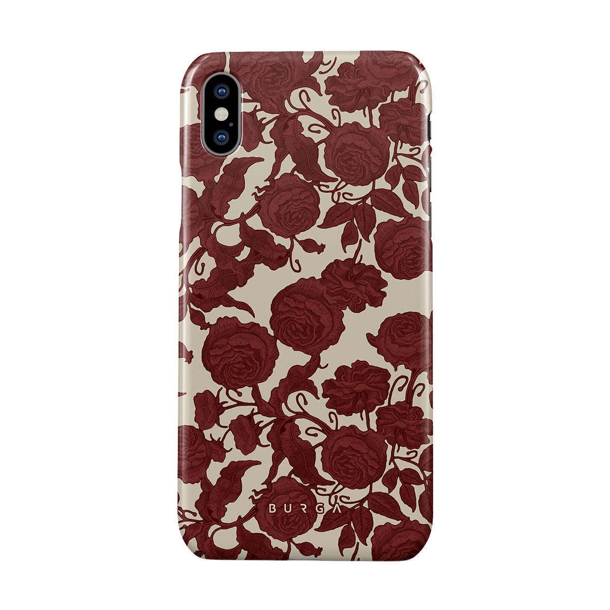 Questo design presenta: rose rosso scuro, motivo floreale intricato, motivo vintage.