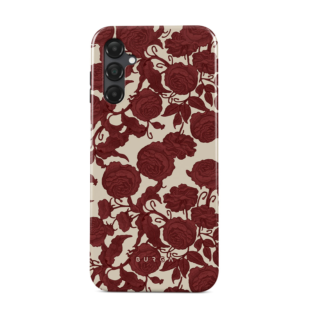 Questo design presenta: rose rosso scuro, motivo floreale intricato, motivo vintage.