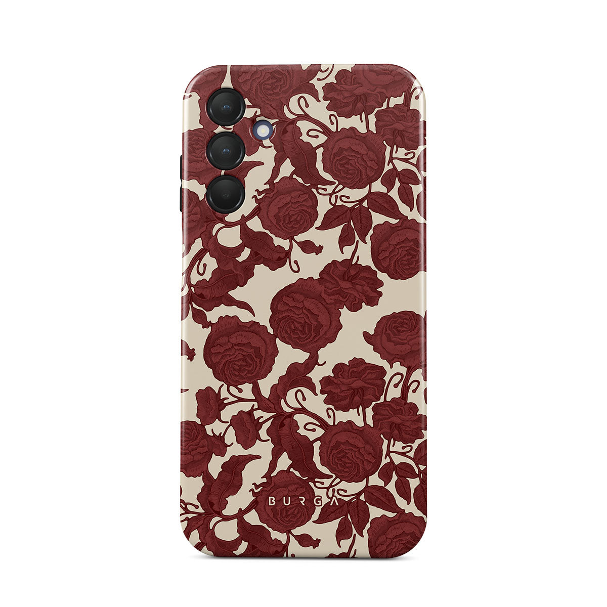 Questo design presenta: rose rosso scuro, motivo floreale intricato, motivo vintage.