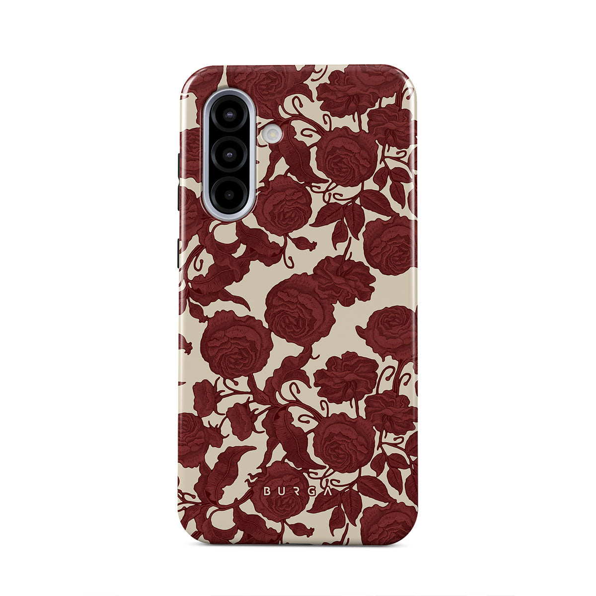 Questo design presenta: rose rosso scuro, motivo floreale intricato, motivo vintage.