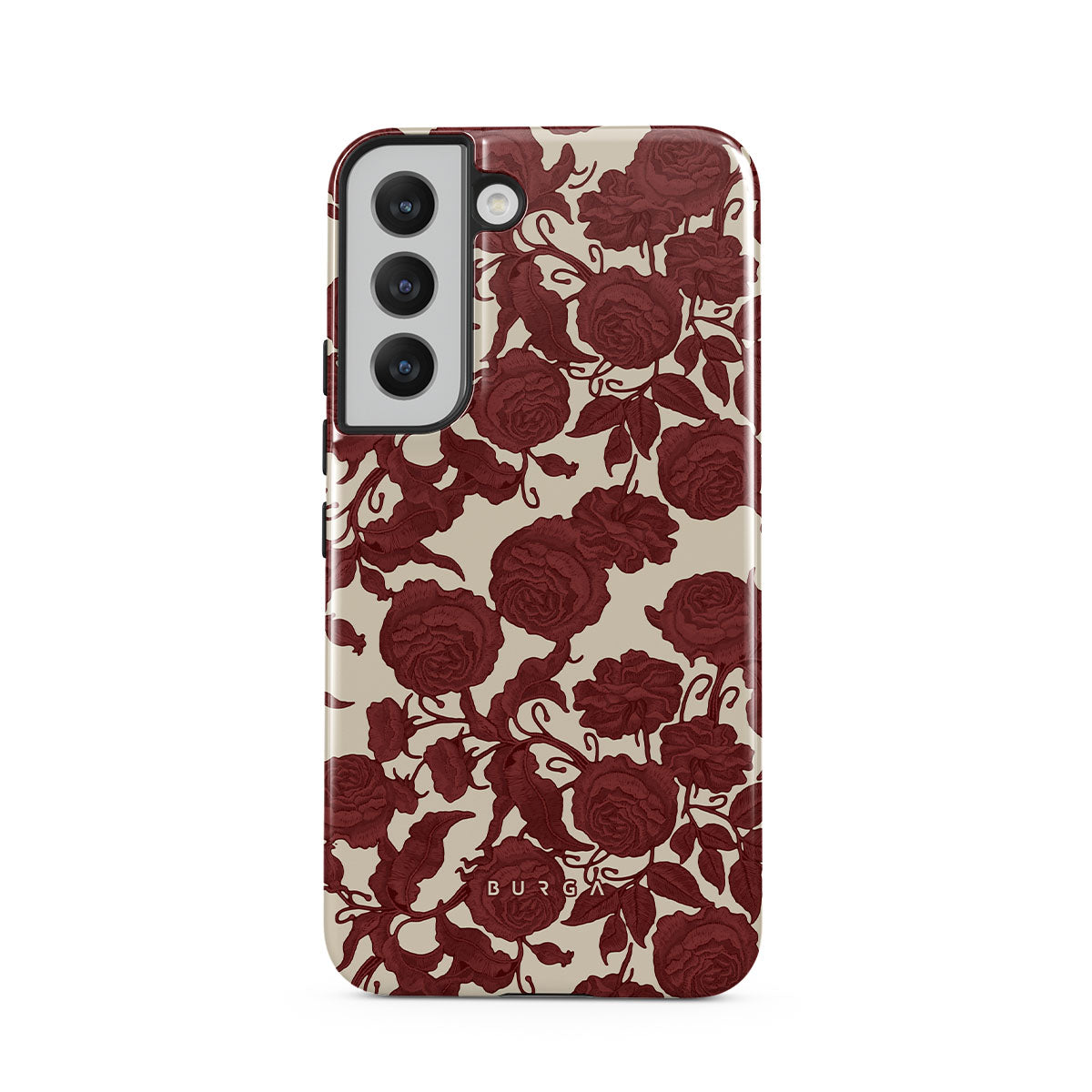 Questo design presenta: rose rosso scuro, motivo floreale intricato, motivo vintage.