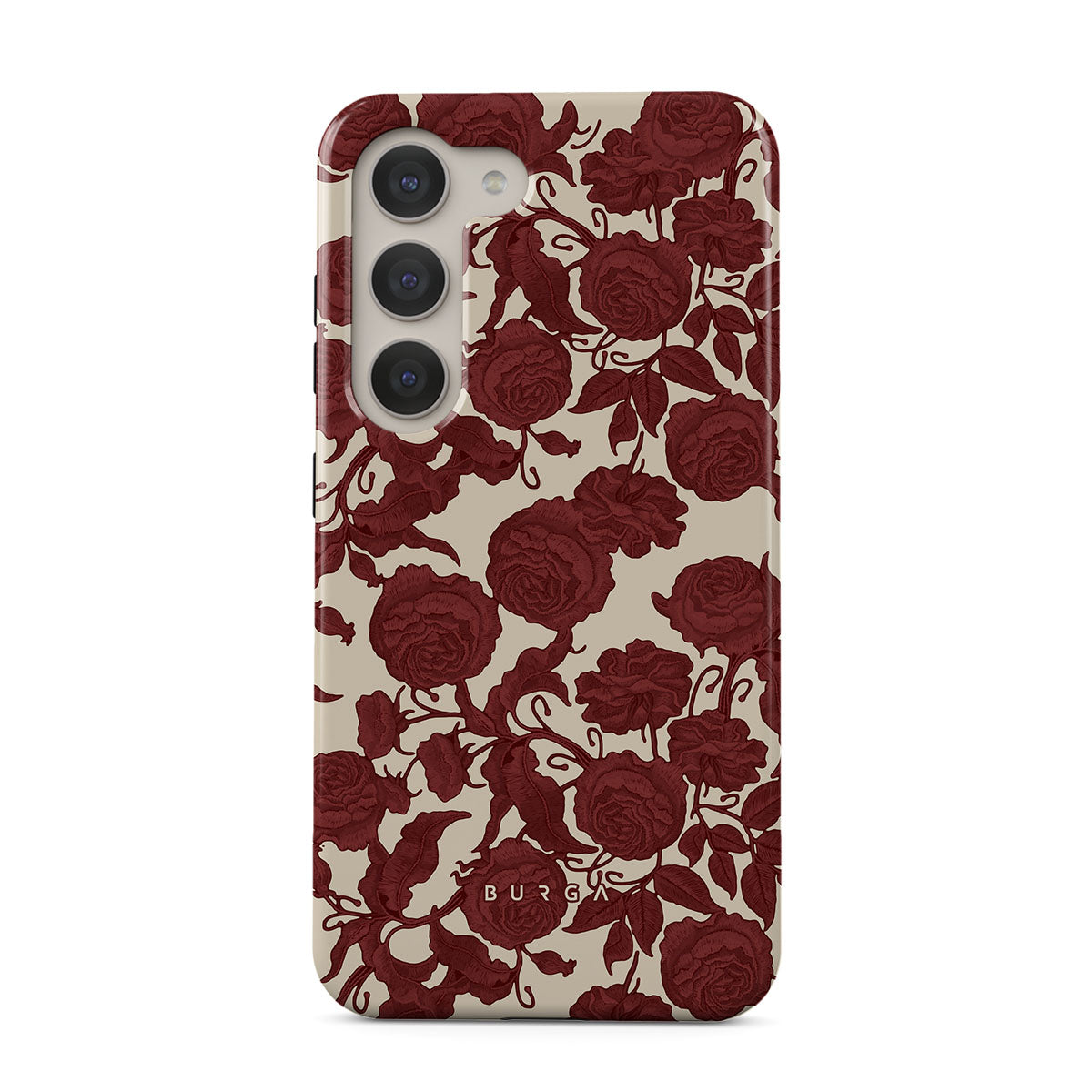 Questo design presenta: rose rosso scuro, motivo floreale intricato, motivo vintage.