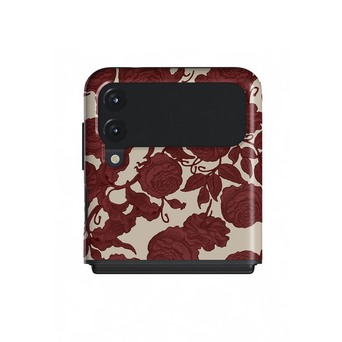 Questo design presenta: rose rosso scuro, motivo floreale intricato, motivo vintage.