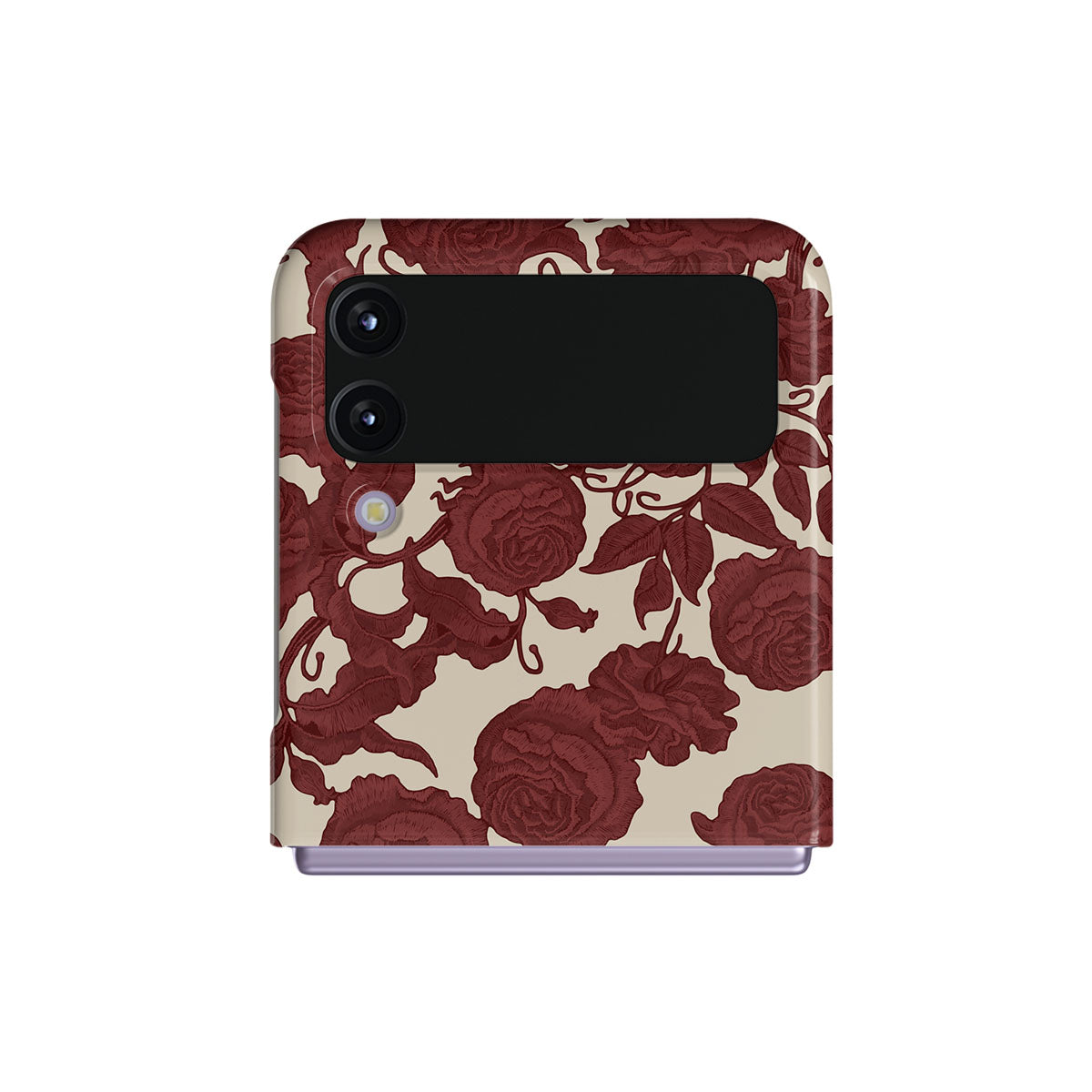 Questo design presenta: rose rosso scuro, motivo floreale intricato, motivo vintage.