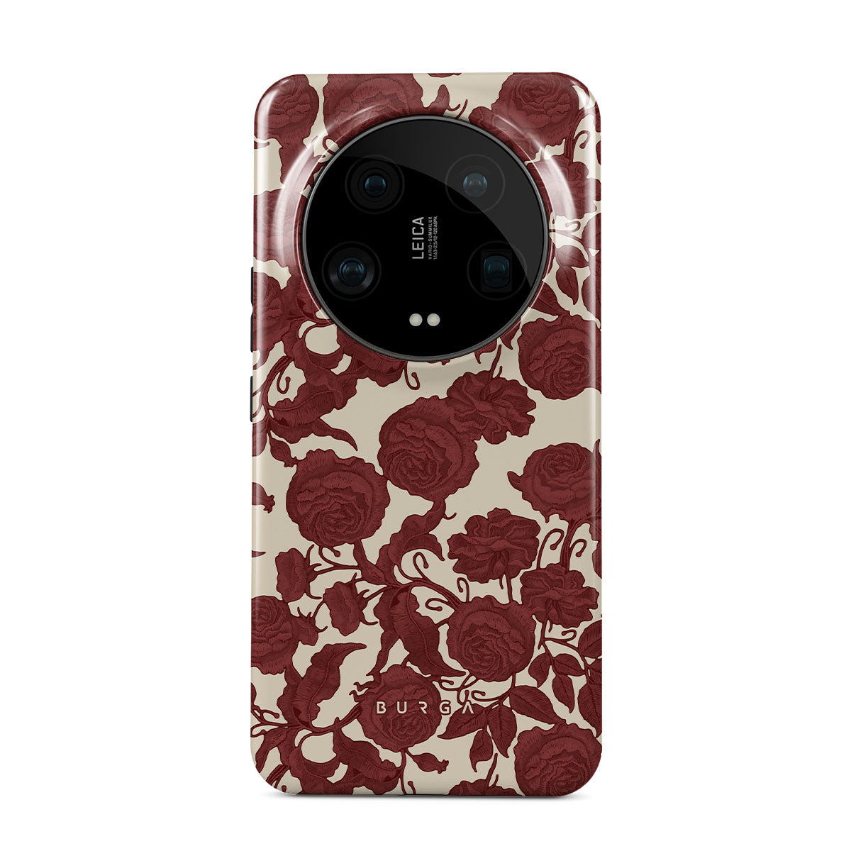 Questo design presenta: rose rosso scuro, motivo floreale intricato, motivo vintage.