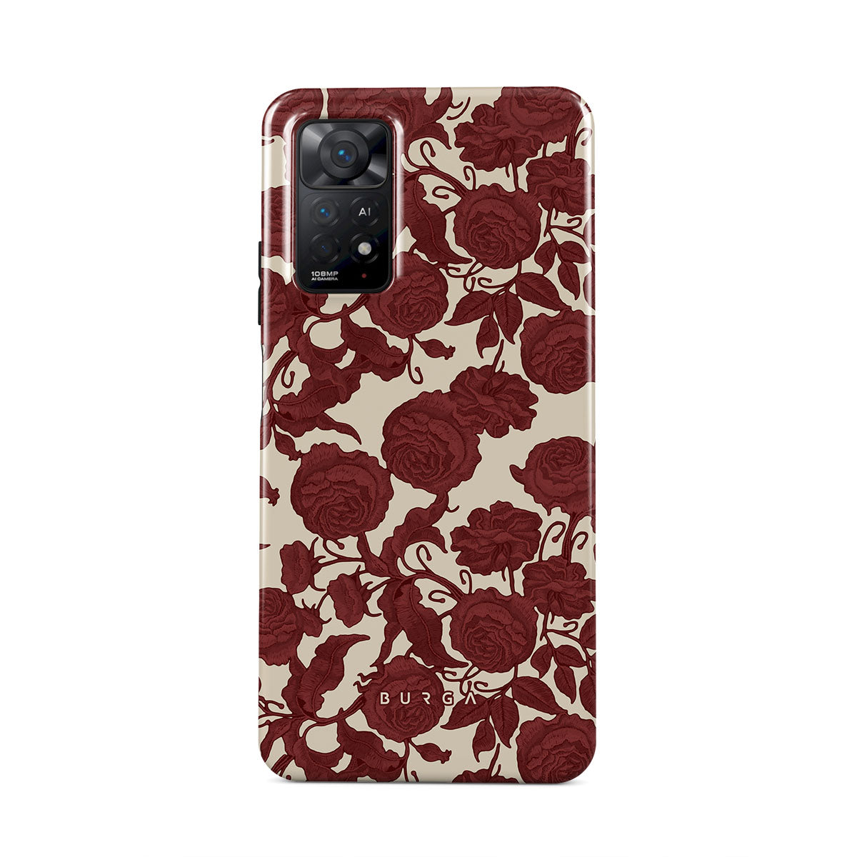 Questo design presenta: rose rosso scuro, motivo floreale intricato, motivo vintage.