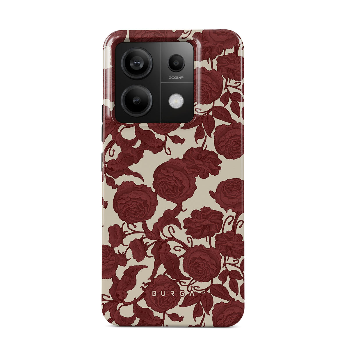 Questo design presenta: rose rosso scuro, motivo floreale intricato, motivo vintage.