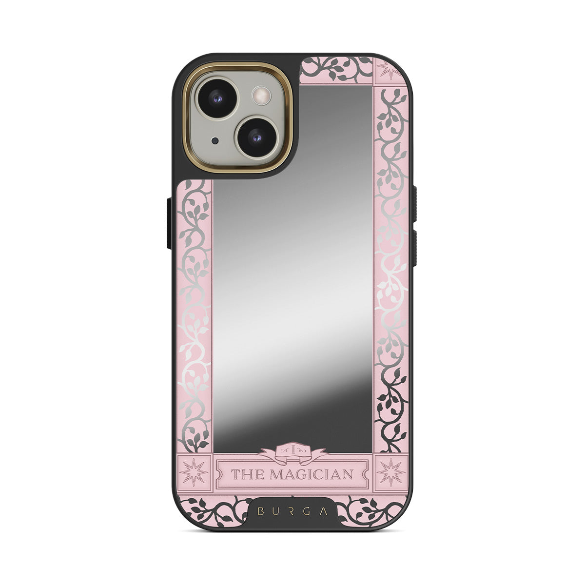 Questo design include: cornice floreale rosa, inserimento di specchio
