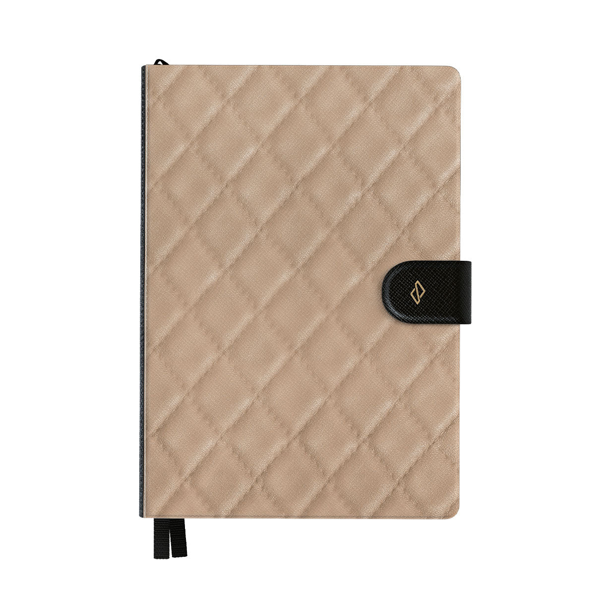 La sua elegante copertina in pelle saffiano vegan, abbinata alla chiusura magnetica, protegge le pagine da eventuali schizzi di caffè e dai piccoli inconvenienti della vita quotidiana.