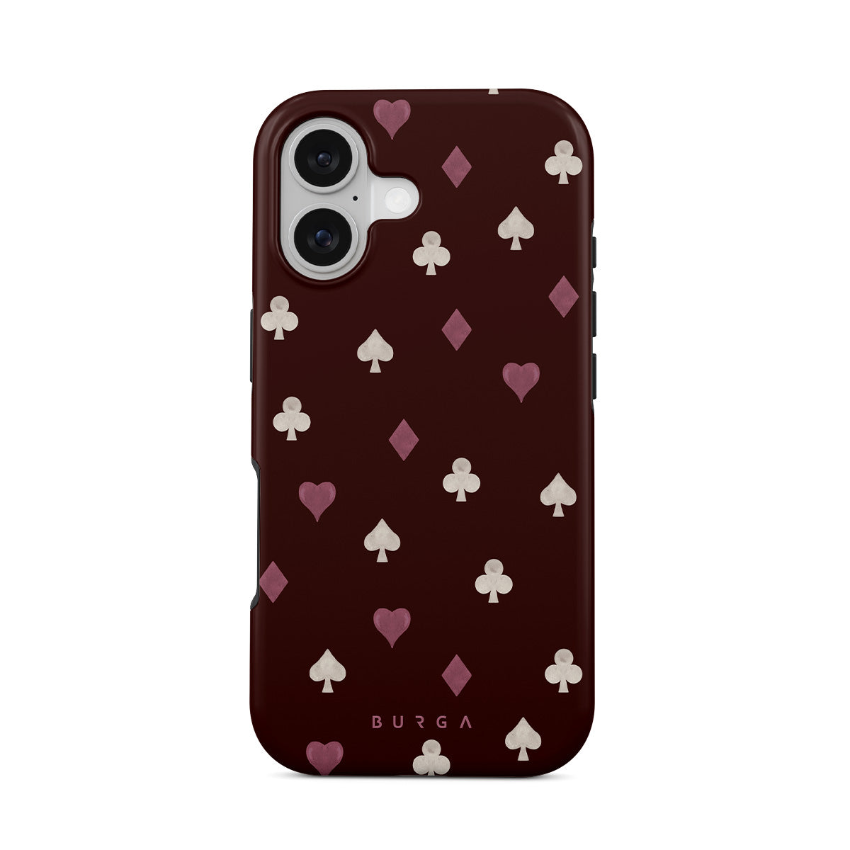 Questo design include: semi delle carte, cuori, picche, quadri, fiori, sfondo bordeaux