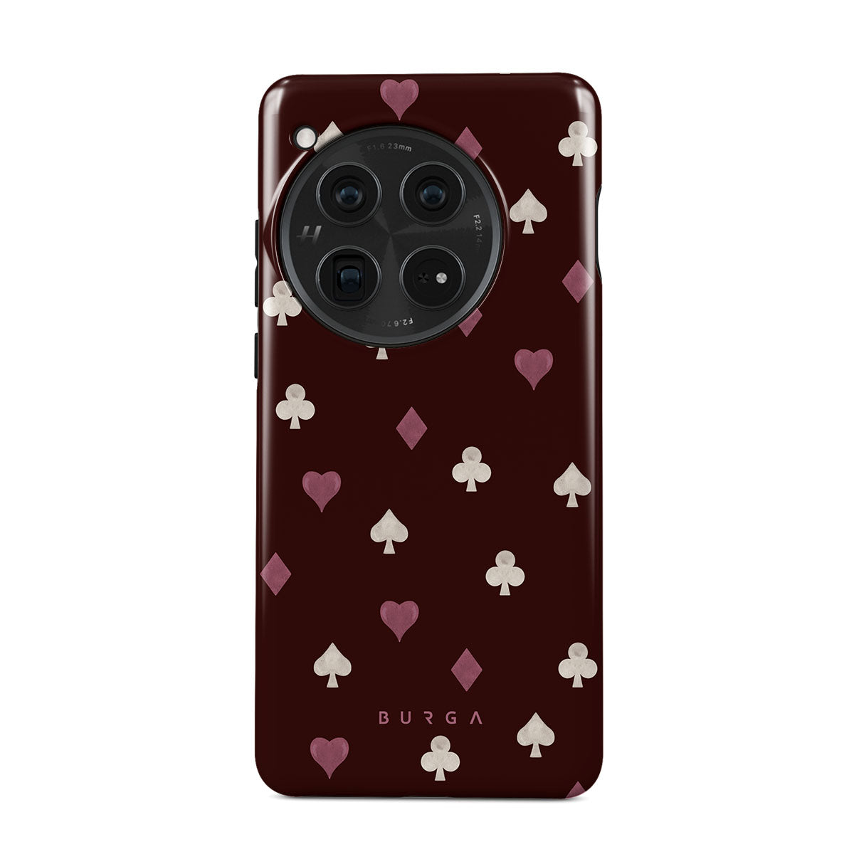 Questo design include: semi delle carte, cuori, picche, quadri, fiori, sfondo bordeaux