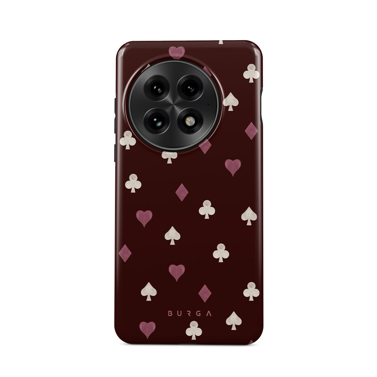 Questo design include: semi delle carte, cuori, picche, quadri, fiori, sfondo bordeaux