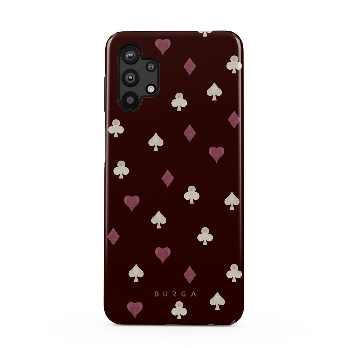 Questo design include: semi delle carte, cuori, picche, quadri, fiori, sfondo bordeaux