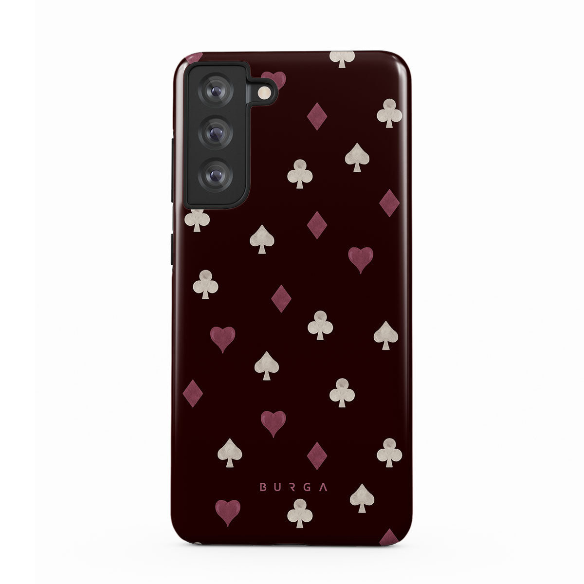 Questo design include: semi delle carte, cuori, picche, quadri, fiori, sfondo bordeaux