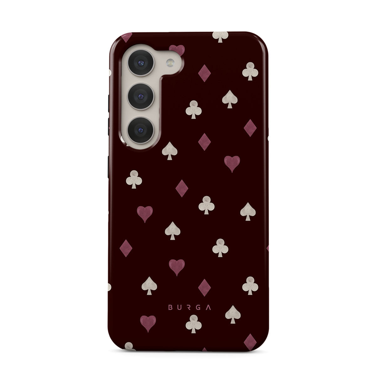 Questo design include: semi delle carte, cuori, picche, quadri, fiori, sfondo bordeaux