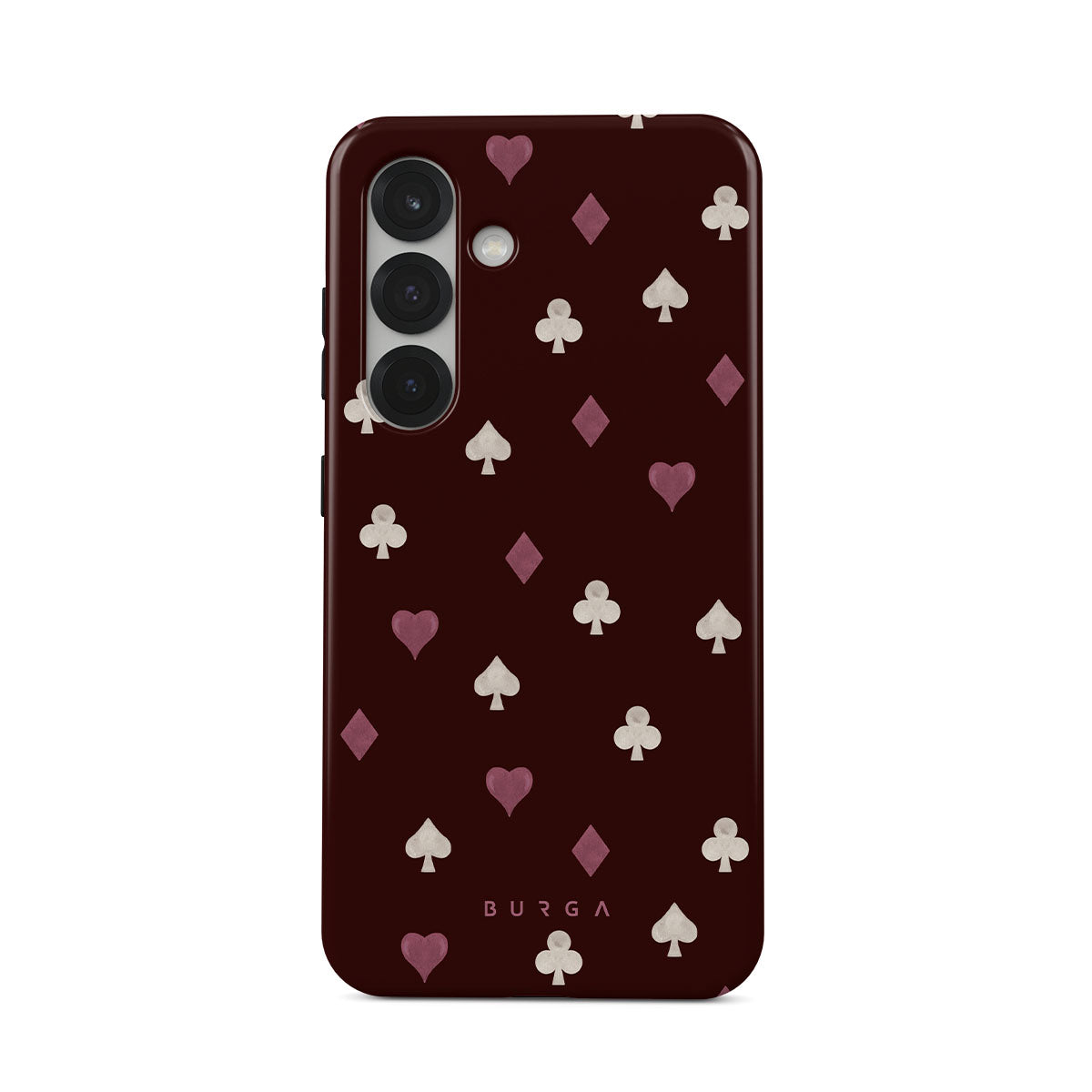 Questo design include: semi delle carte, cuori, picche, quadri, fiori, sfondo bordeaux
