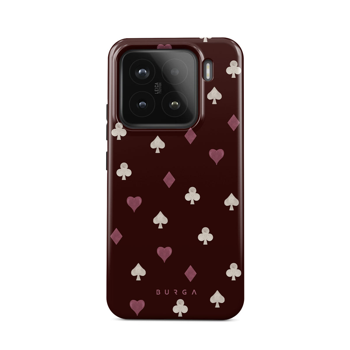 Questo design include: semi delle carte, cuori, picche, quadri, fiori, sfondo bordeaux