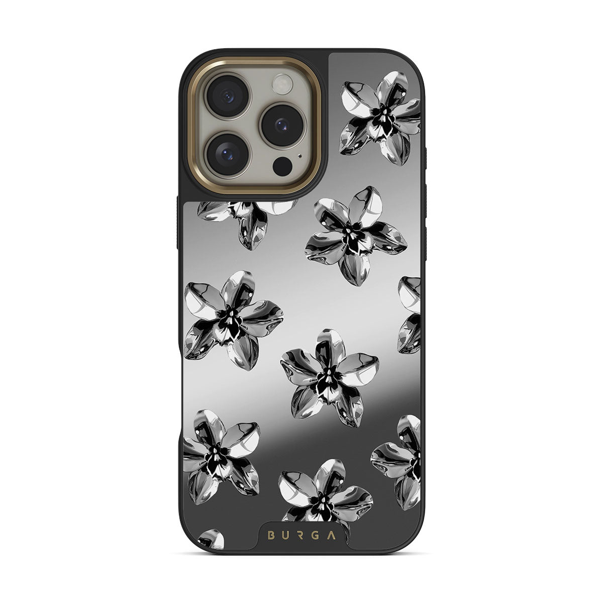 Questo design include: fiori argentati, dettagli metallici, specchio