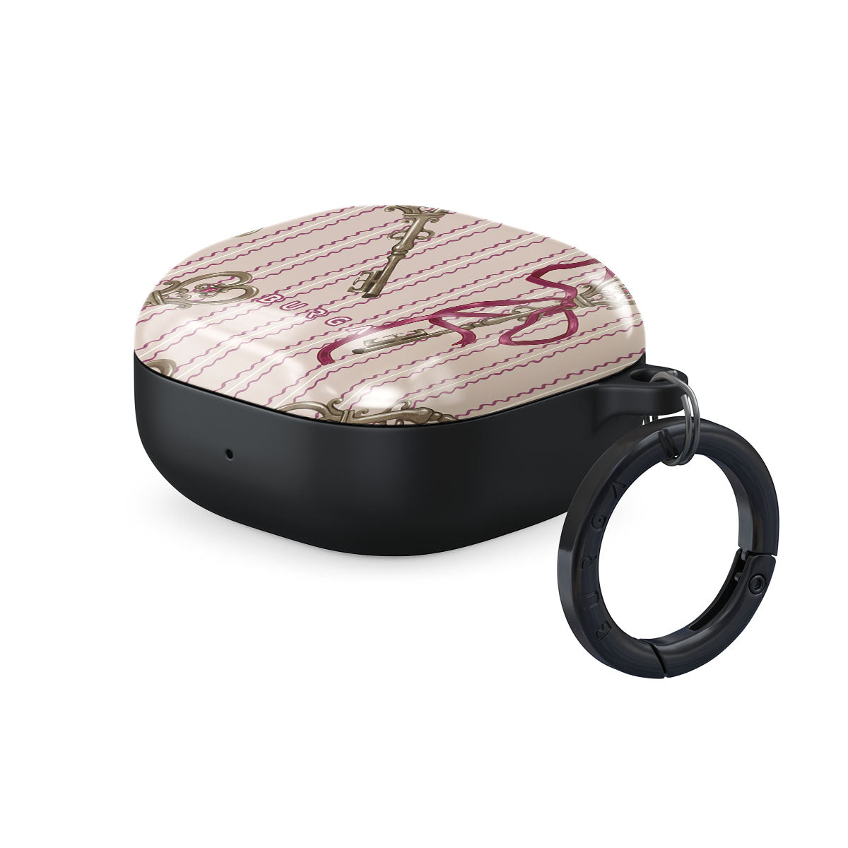 Questo design include: chiavi antiche, fiocchi, nastri rosa, sfondo a righe