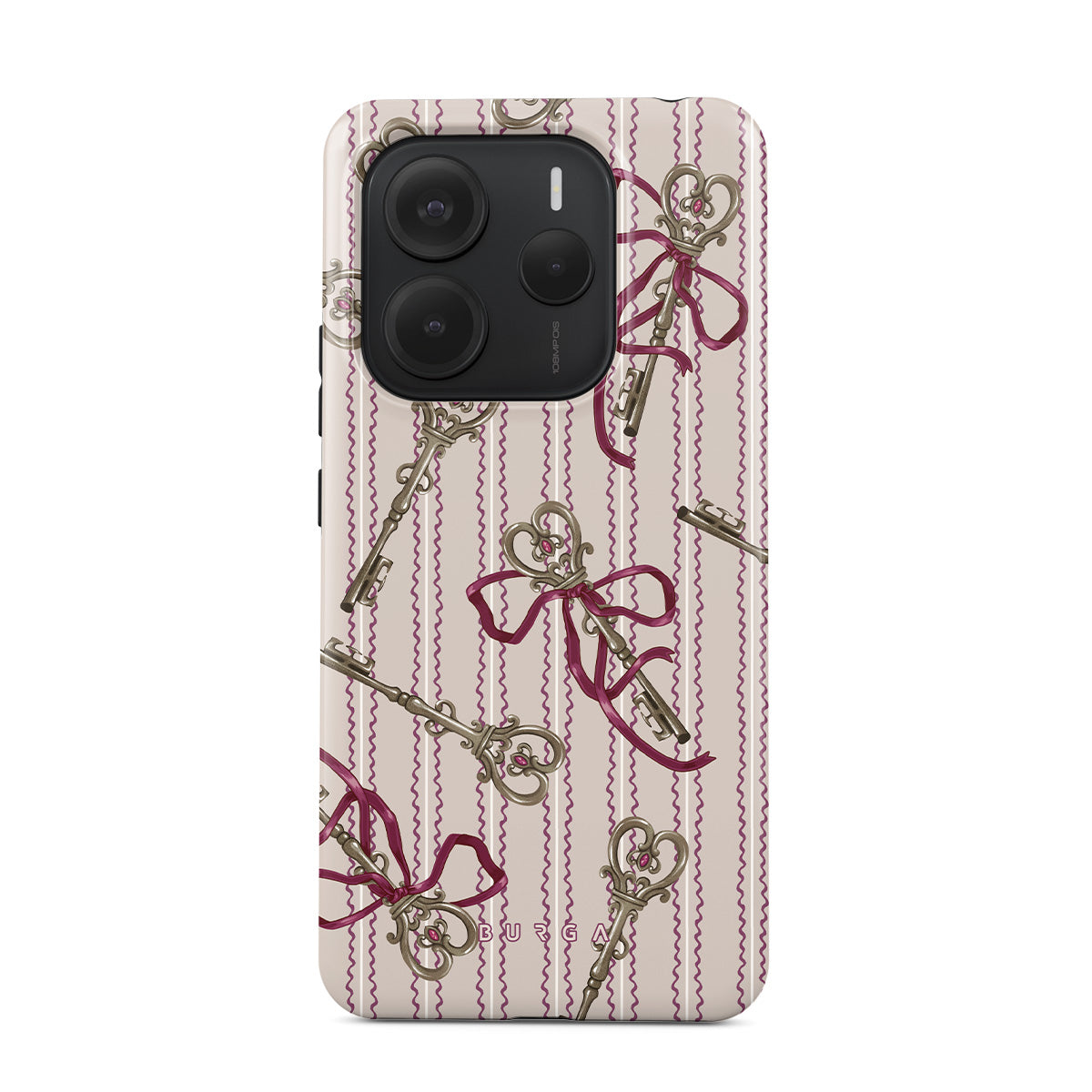 Questo design include: chiavi antiche, fiocchi, nastri rosa, sfondo a righe