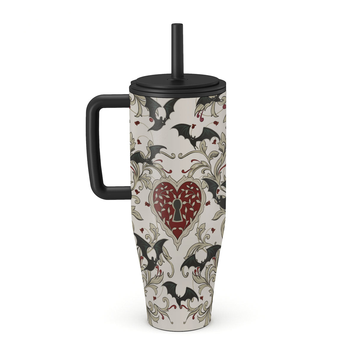 Questo design include: cuore, lucchetto, pipistrelli, motivi gotici
