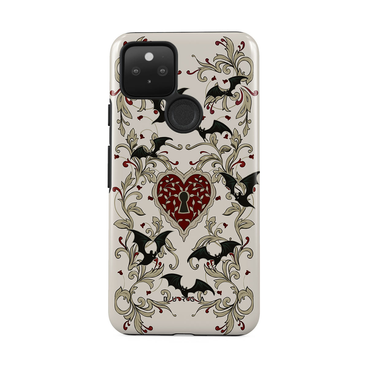 Questo design include: cuore, lucchetto, pipistrelli, motivi gotici