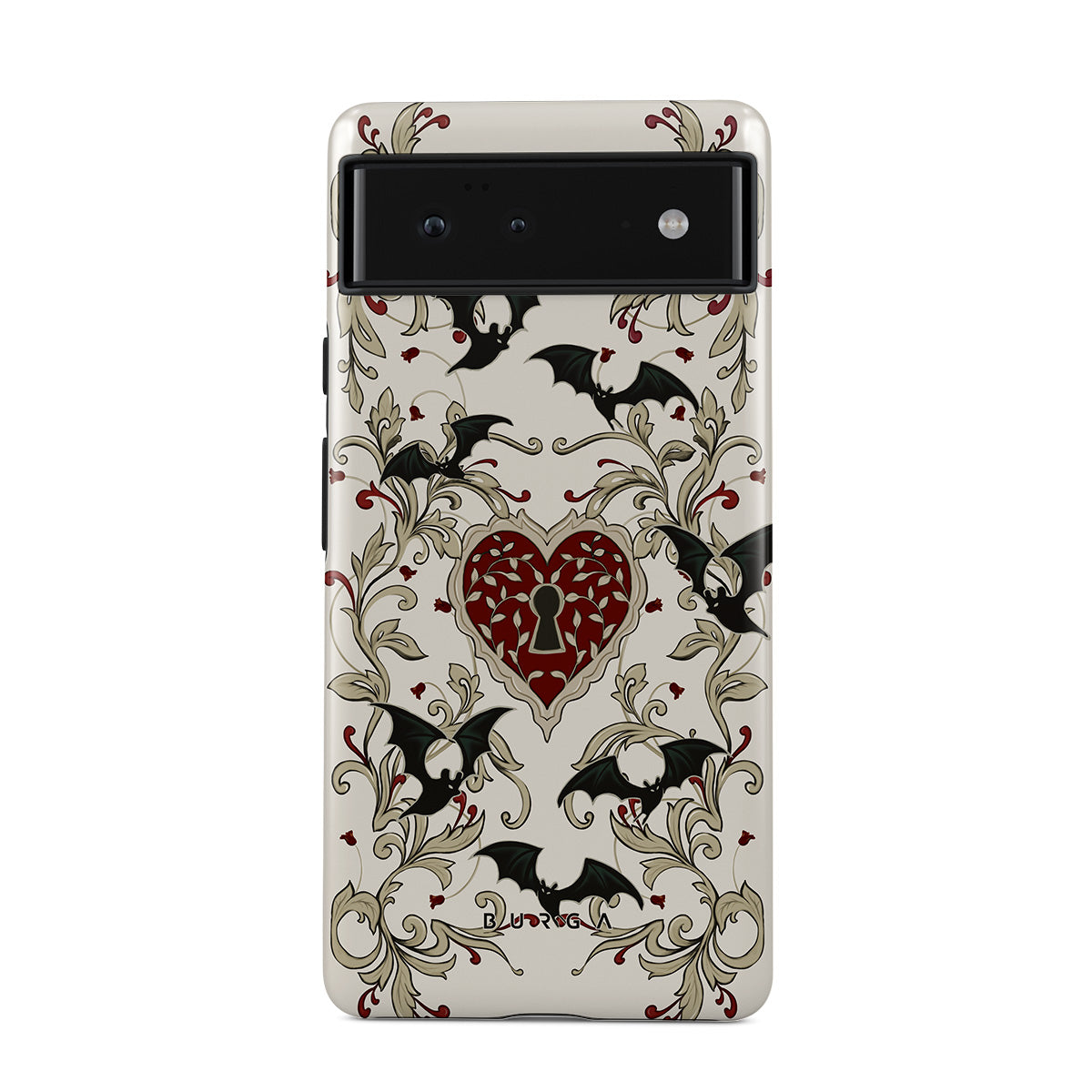 Questo design include: cuore, lucchetto, pipistrelli, motivi gotici