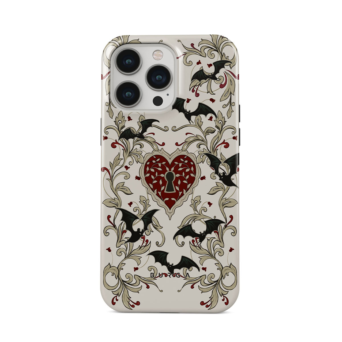 Questo design include: cuore, lucchetto, pipistrelli, motivi gotici