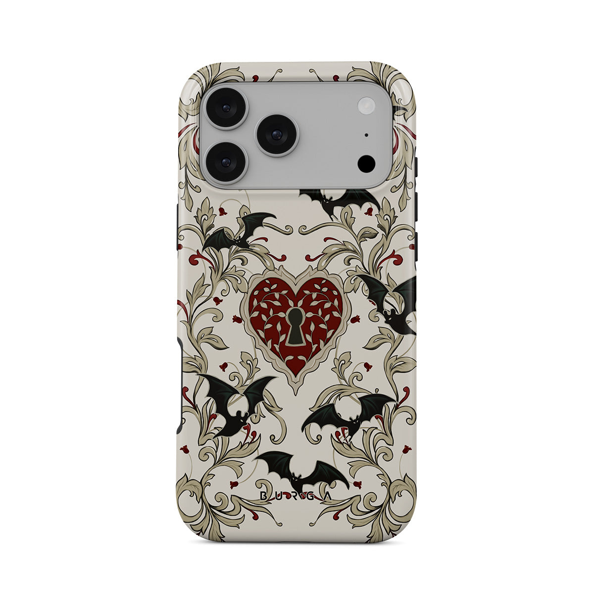 Questo design include: cuore, lucchetto, pipistrelli, motivi gotici