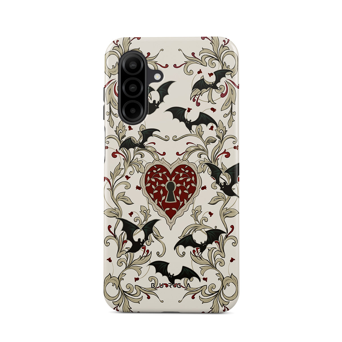 Questo design include: cuore, lucchetto, pipistrelli, motivi gotici