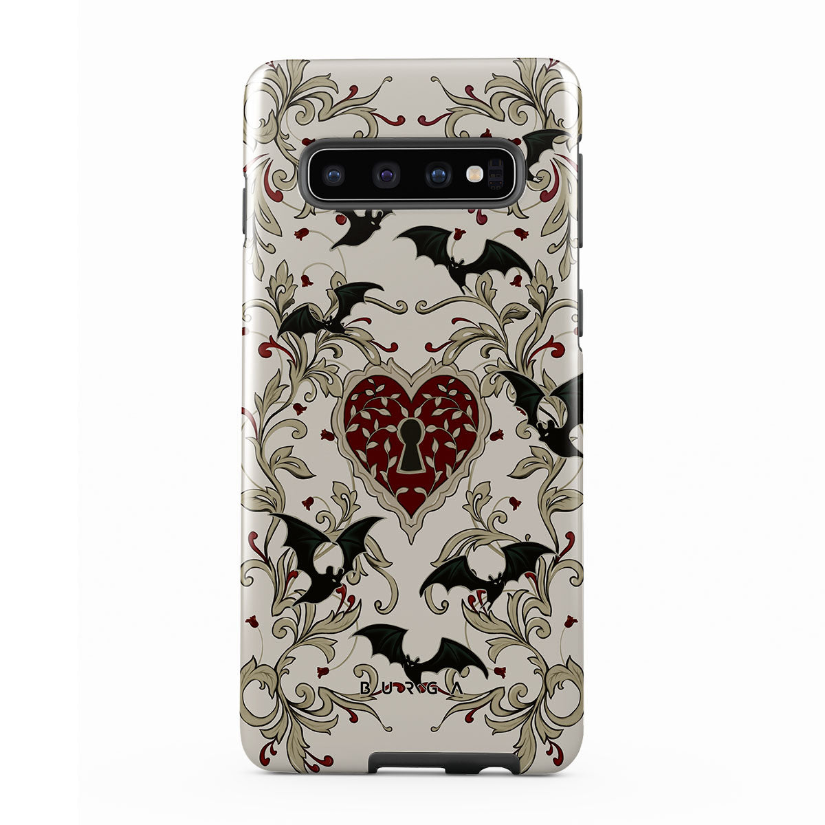 Questo design include: cuore, lucchetto, pipistrelli, motivi gotici