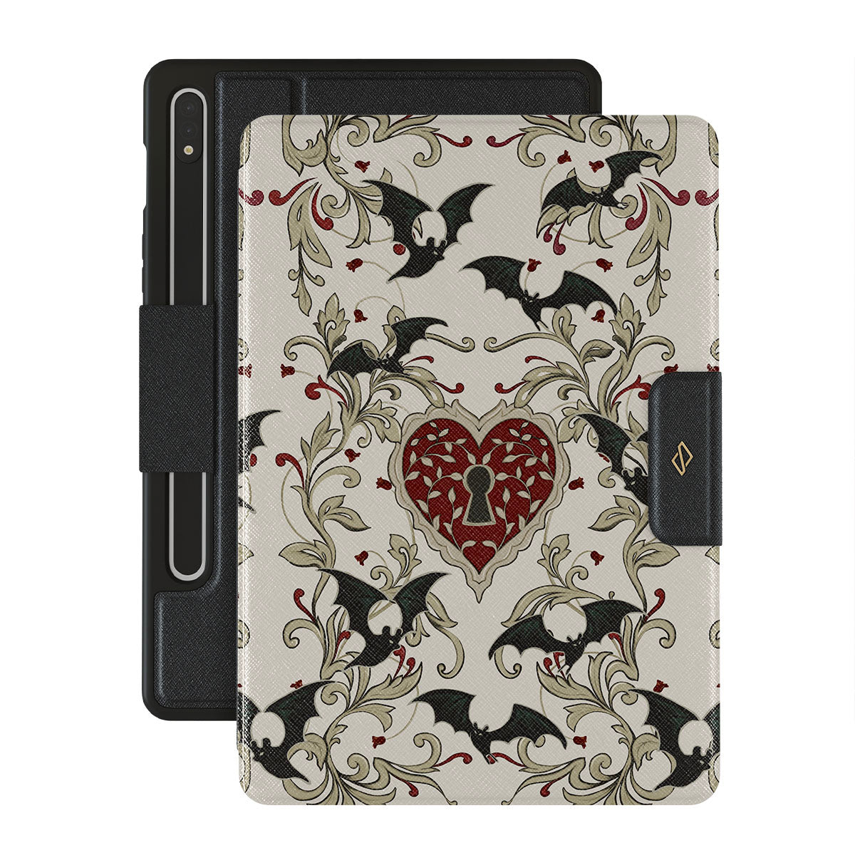 Questo design include: cuore, lucchetto, pipistrelli, motivi gotici