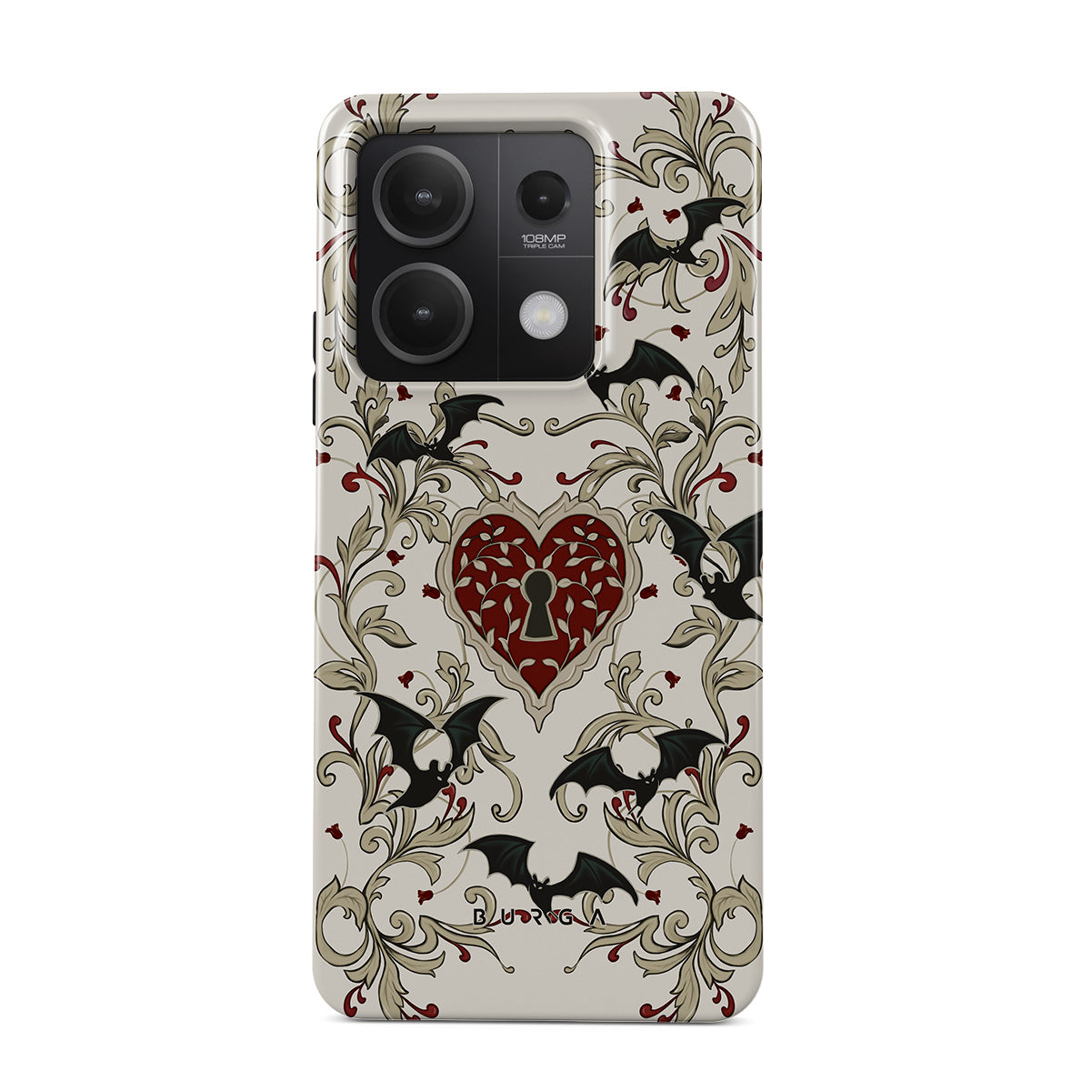Questo design include: cuore, lucchetto, pipistrelli, motivi gotici
