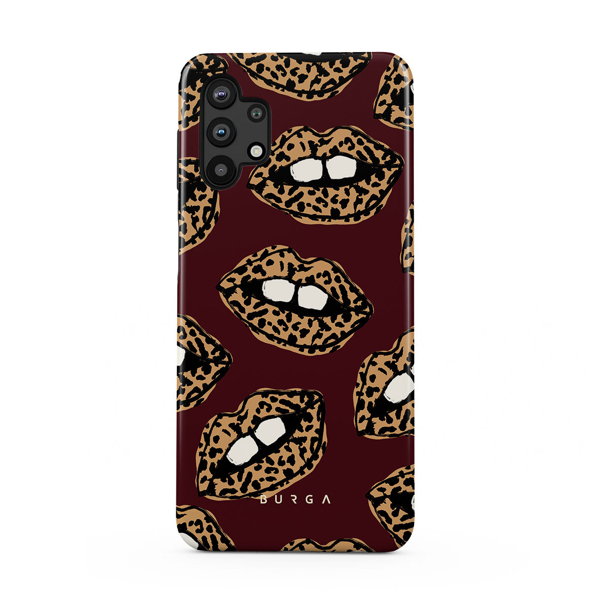 In questo design: stampa leopardata, labbra, labbra aperte, labbra colorate.