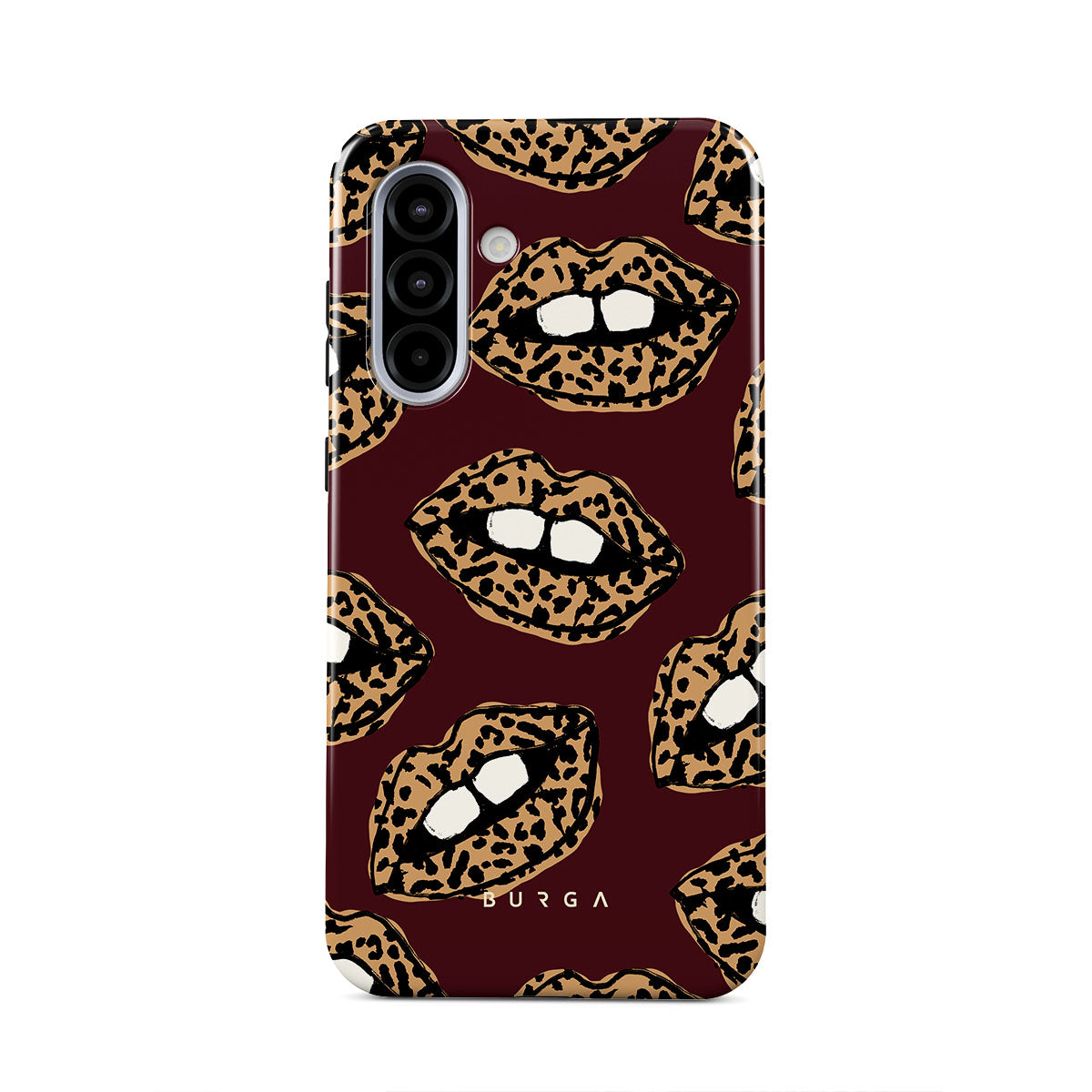 In questo design: stampa leopardata, labbra, labbra aperte, labbra colorate.