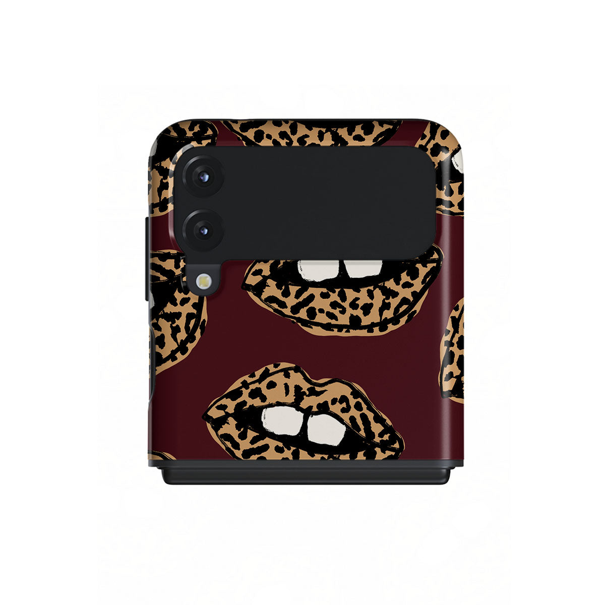 In questo design: stampa leopardata, labbra, labbra aperte, labbra colorate.