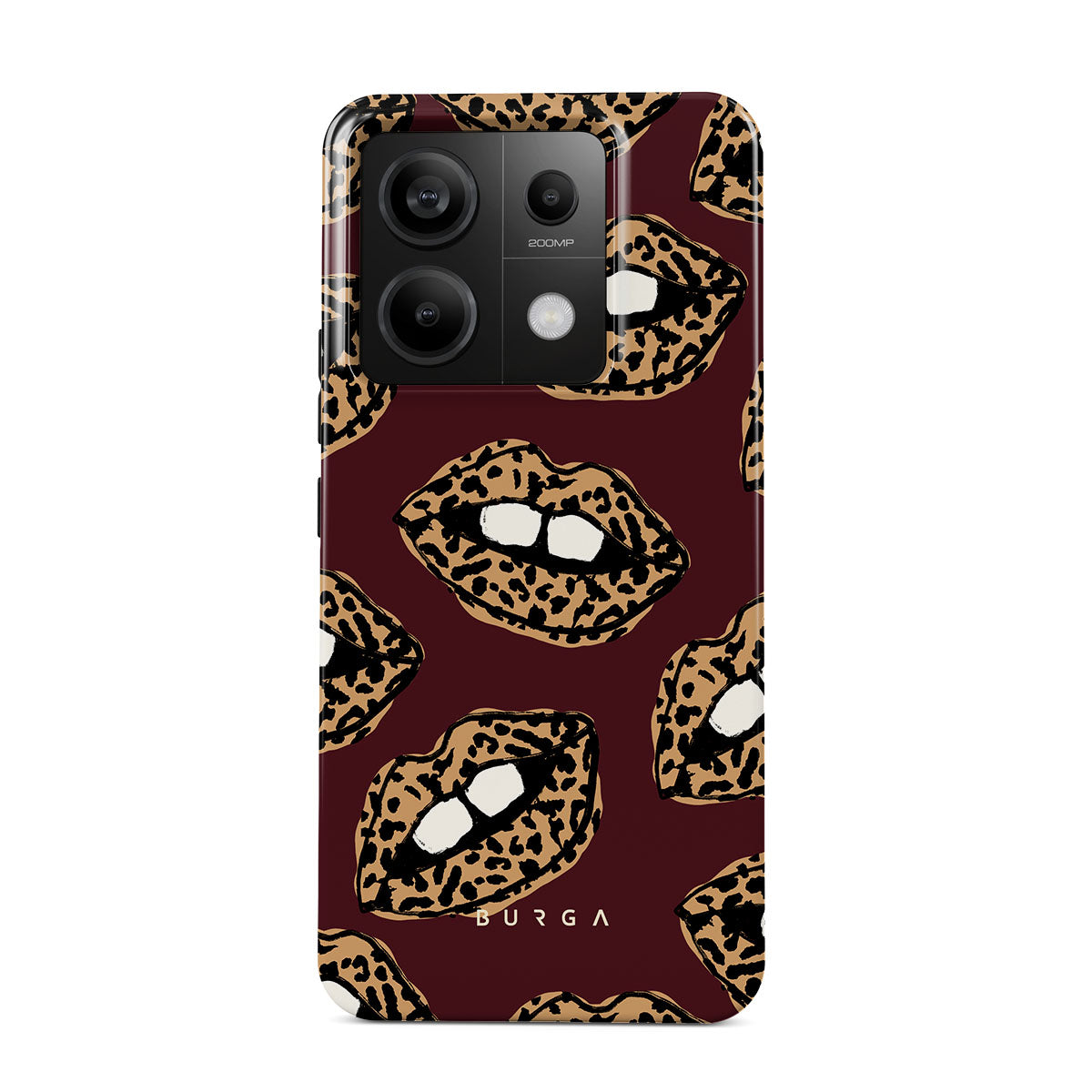 In questo design: stampa leopardata, labbra, labbra aperte, labbra colorate.