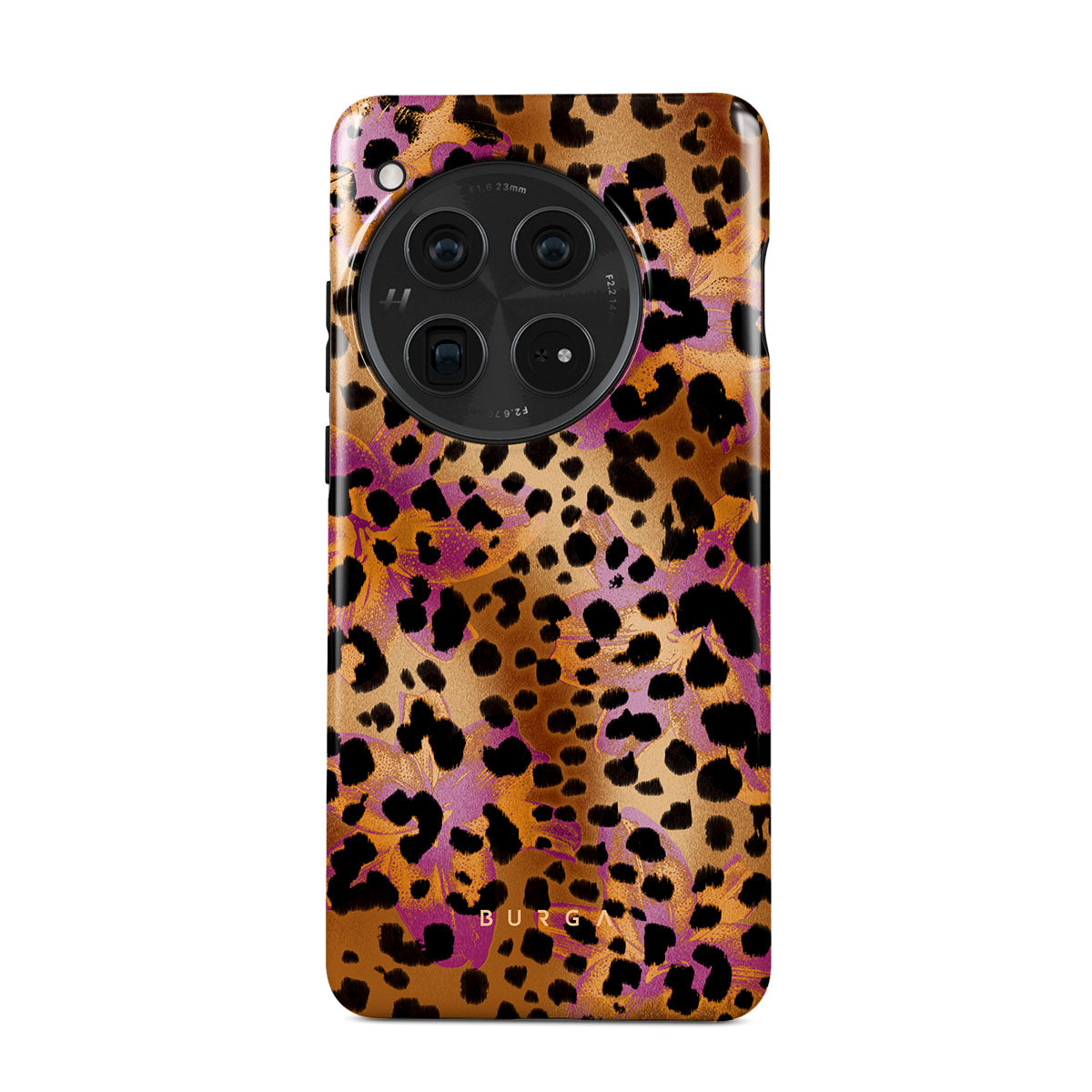 Questo design include: stampa leopardata, marrone, arancione, viola, stampa animale.