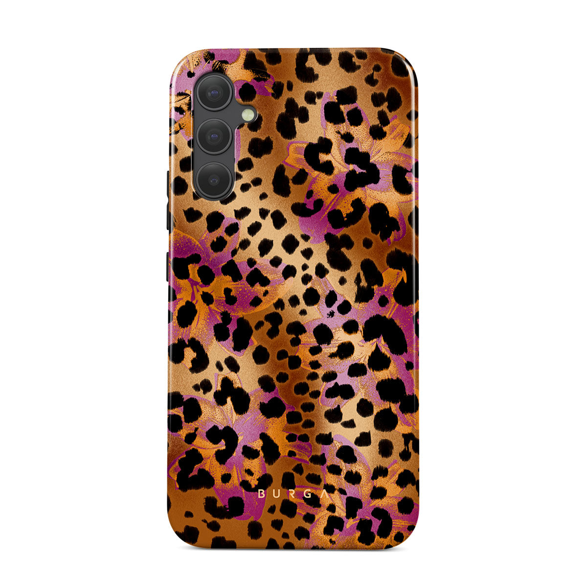 Questo design include: stampa leopardata, marrone, arancione, viola, stampa animale.
