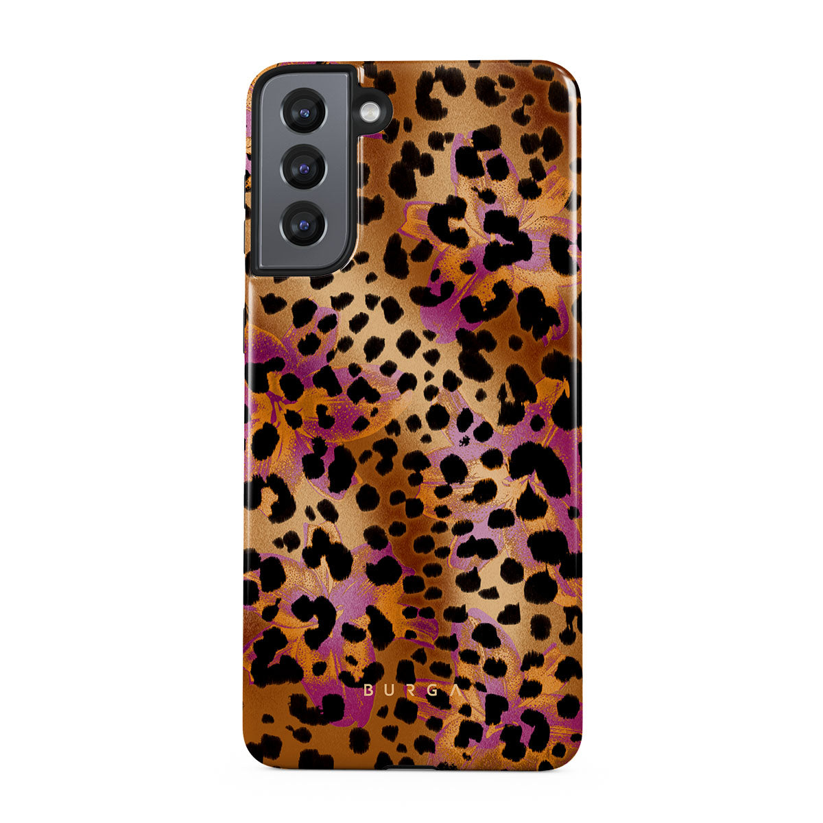 Questo design include: stampa leopardata, marrone, arancione, viola, stampa animale.