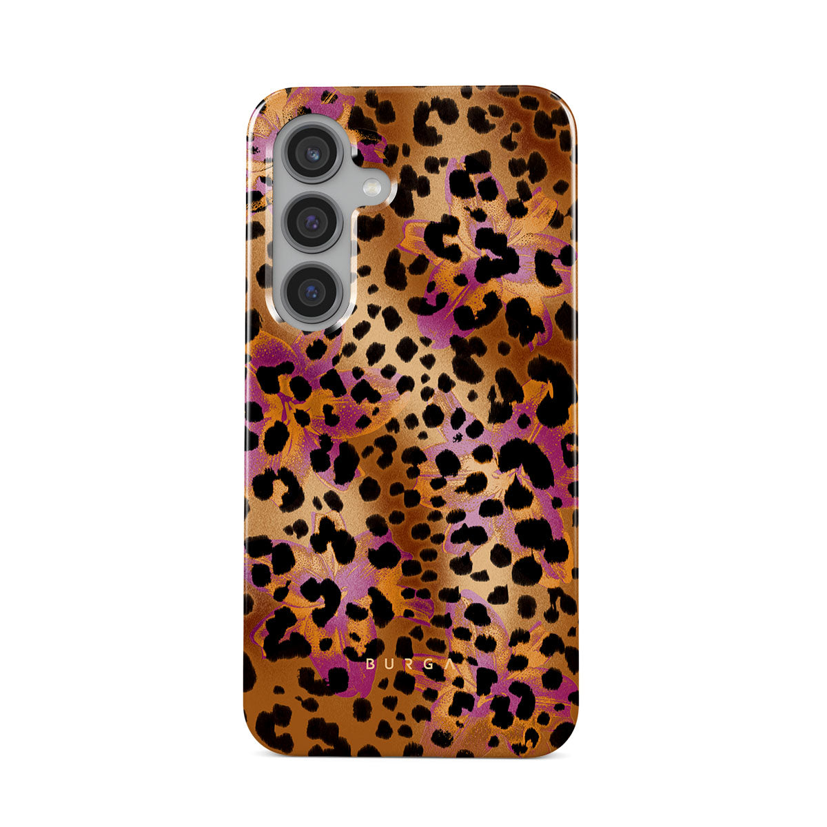 Questo design include: stampa leopardata, marrone, arancione, viola, stampa animale.