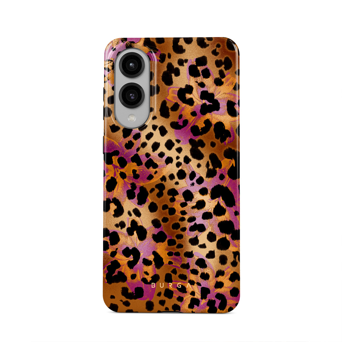 Questo design include: stampa leopardata, marrone, arancione, viola, stampa animale.