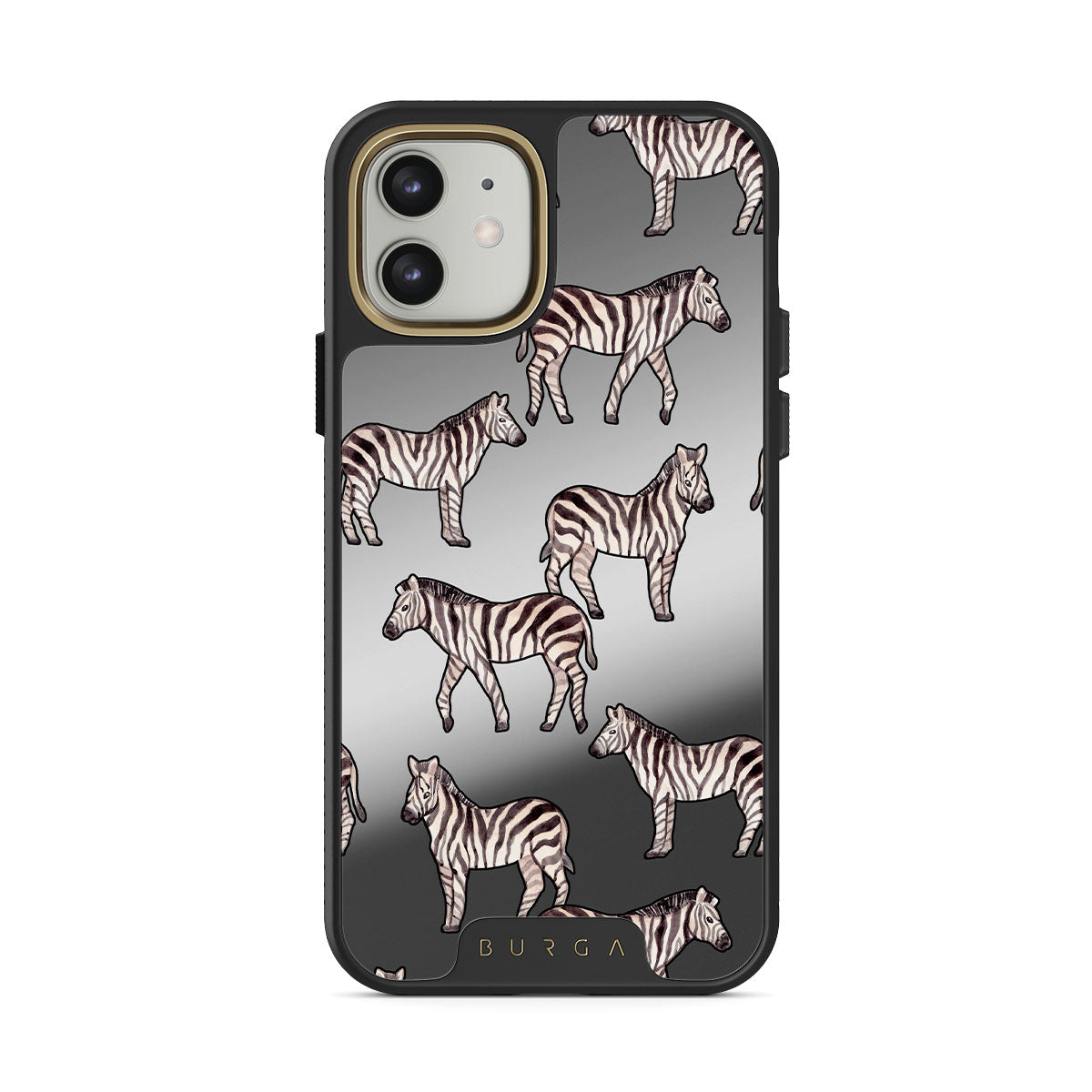 Questo design include: zebre, stampa animale, strisce bianche e nere, specchio