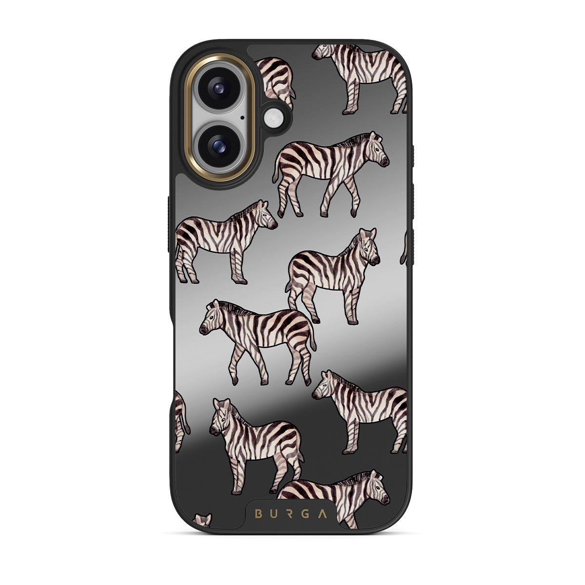 Questo design include: zebre, stampa animale, strisce bianche e nere, specchio