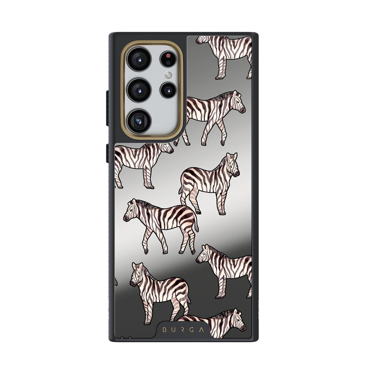 Questo design include: zebre, stampa animale, strisce bianche e nere, specchio