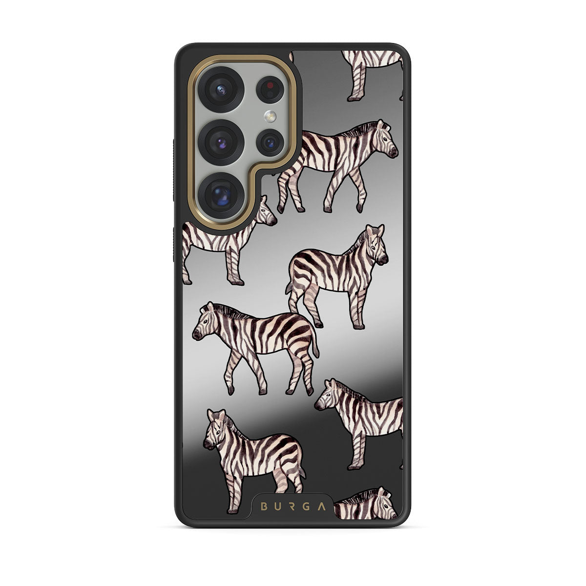 Questo design include: zebre, stampa animale, strisce bianche e nere, specchio