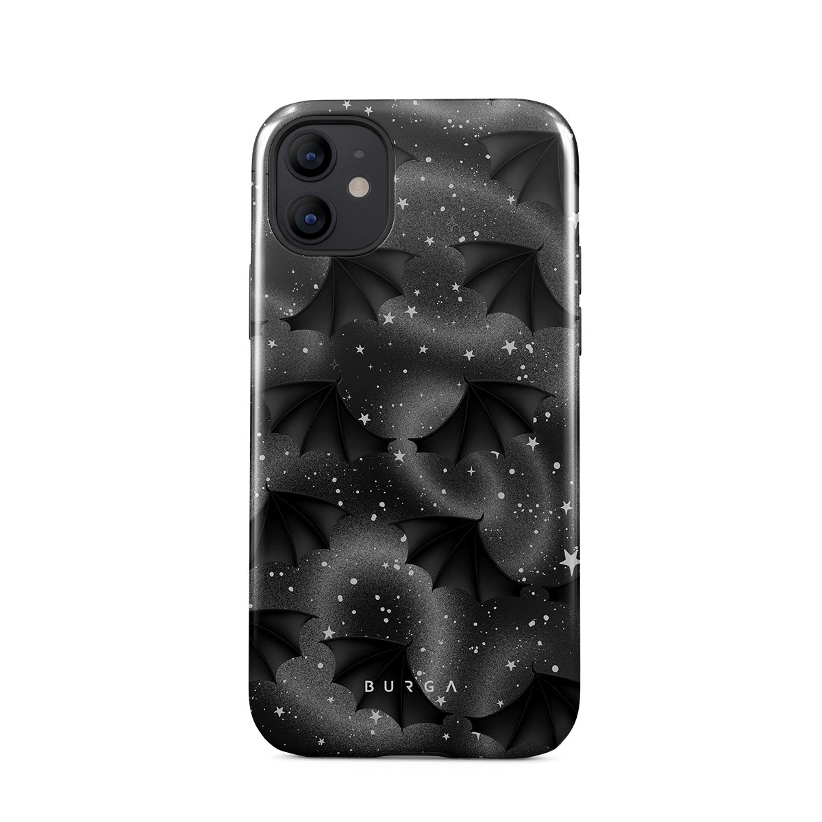 Questo design include: ali di pipistrello, stelle, spirali misteriose, cielo nero