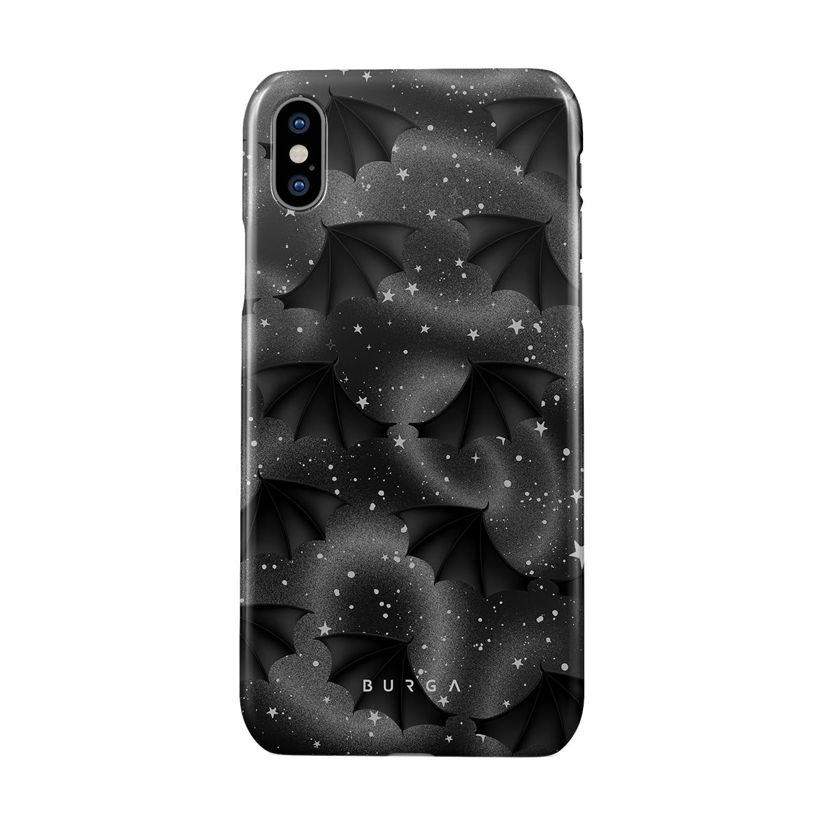 Questo design include: ali di pipistrello, stelle, spirali misteriose, cielo nero