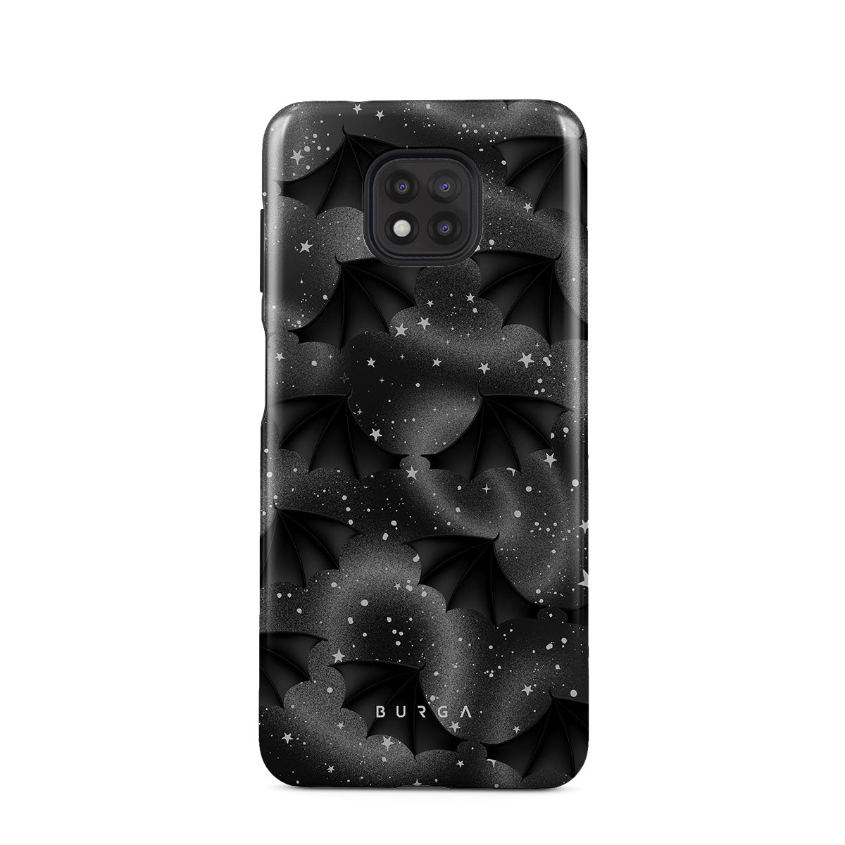 Questo design include: ali di pipistrello, stelle, spirali misteriose, cielo nero